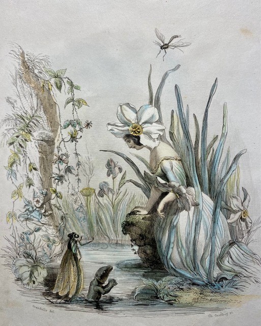 Original steel engraving, drawn by Grandville, engraved by Geoffroy. 1847, hand-coloured, 14 x 17 cm. Very good condition, matted.